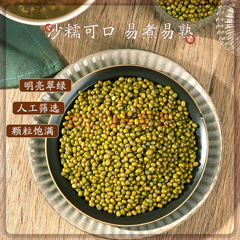 商品相册:吾谷为伴绿豆 2斤 绿豆汤 可发豆芽 打豆浆 东北杂粮 真空包装 大米伴侣第