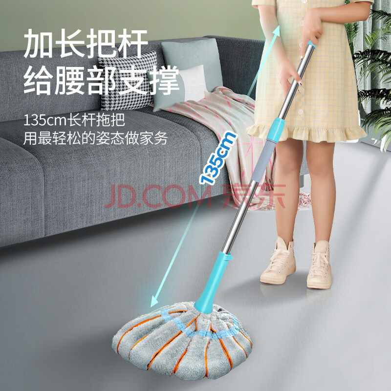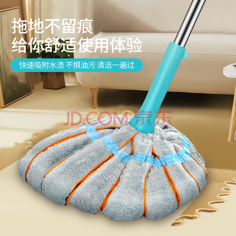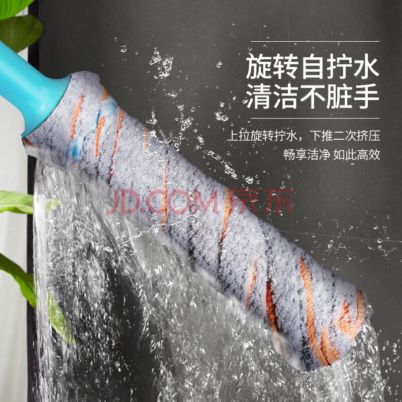 商品相册:百家好世棉线拖把55cm1布拧水必卡锁免手洗家用一拖净吸水墩布拖布第