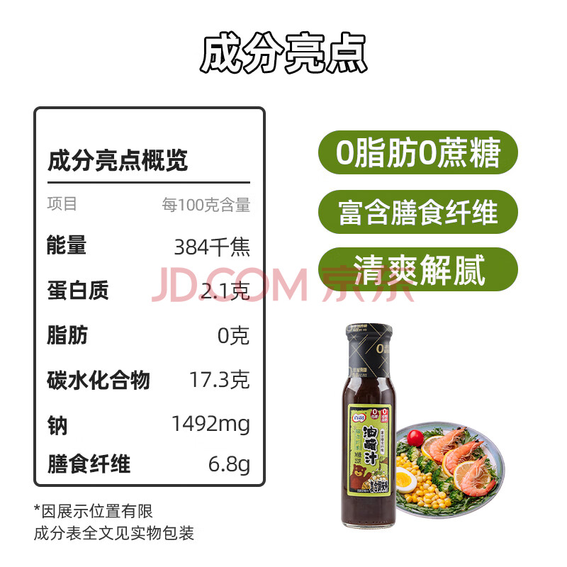 商品相册:百利 0脂肪油醋汁0蔗糖富含膳食纤维蔬菜水果沙拉酱汁250g第
