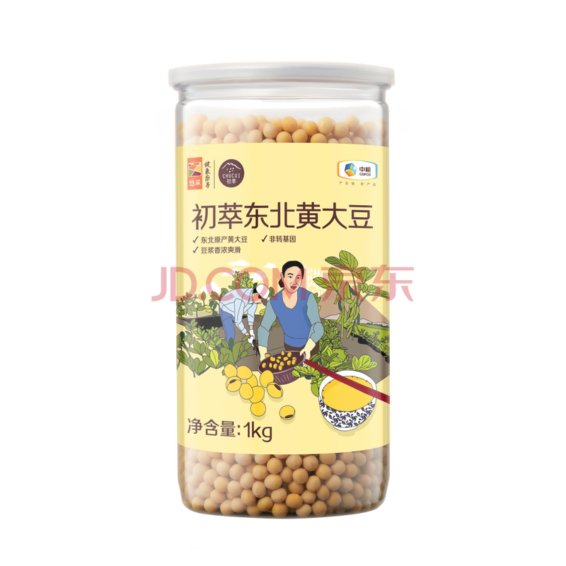 商品相册:初萃 中粮东北黄大豆2斤 五谷杂粮 可打豆浆 非转基因 粗粮 罐装第1张/共5