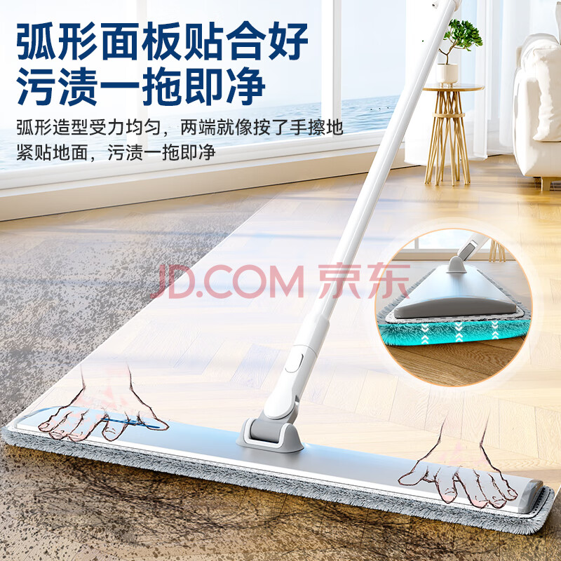 商品相册:宝家洁【杨幂同款】平板拖把60cm配2片杆长129cm拖布E11铝板大平拖第