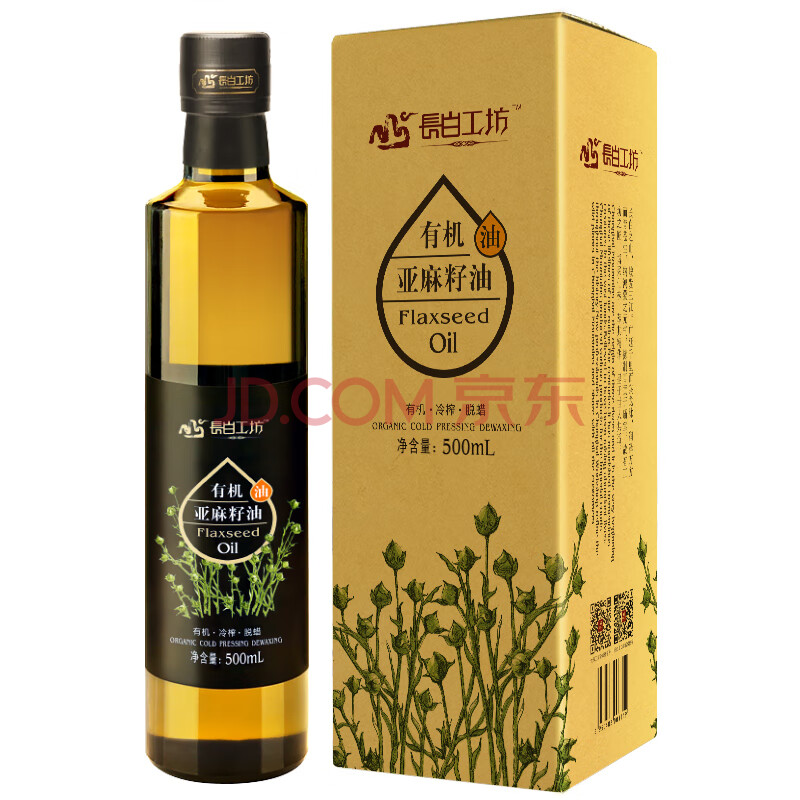 商品相册:长白工坊 四项有机亚麻籽油口服100%一级冷榨亚麻油500ml直接喝直饮Omega3第1张/共7