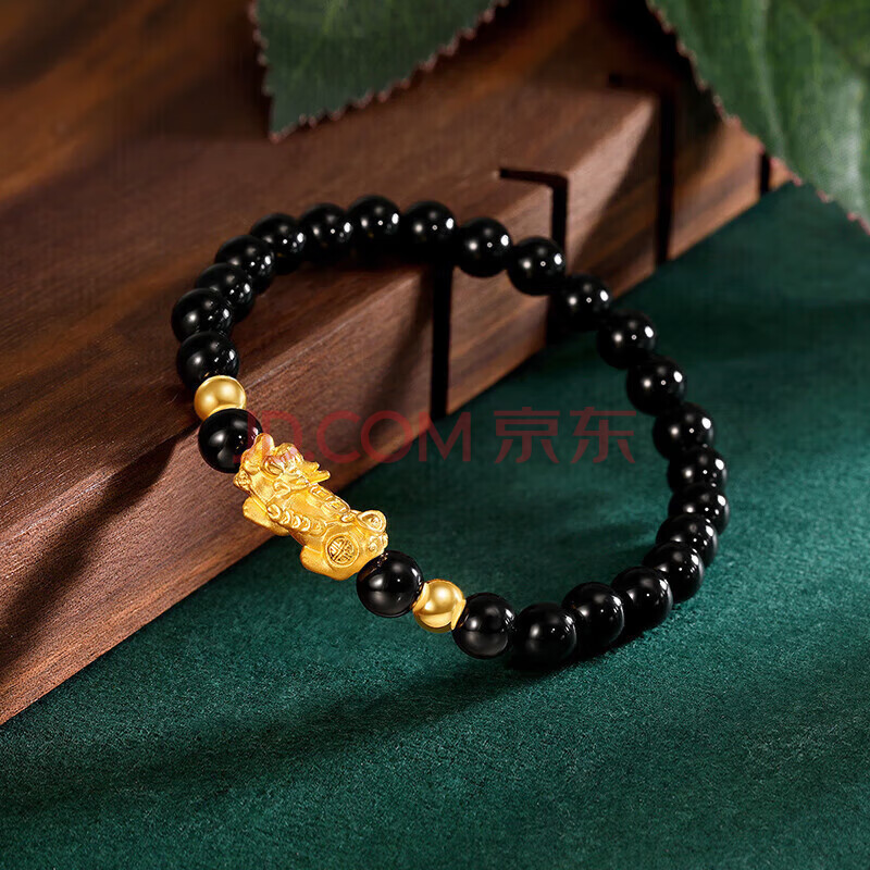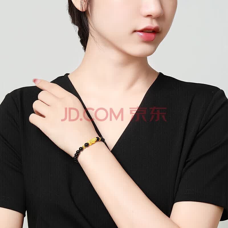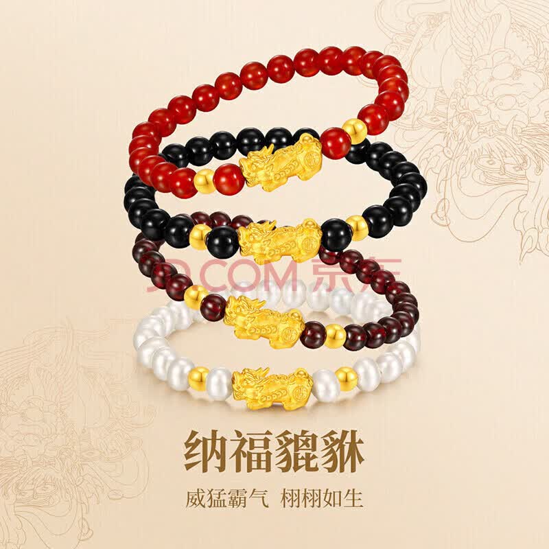 商品相册:梦金园黄金转运珠3D硬金元宝貔貅手链石榴石手串礼物第