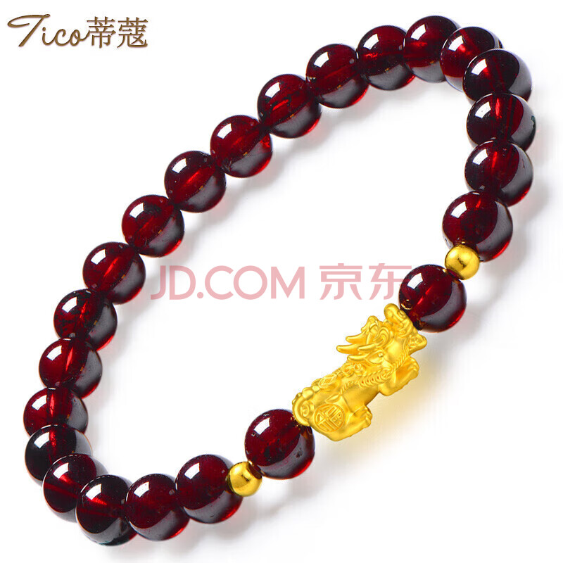 商品相册:蒂蔻(Tico)足金招财貔貅黄金转运珠手链女3D硬金石榴石手串饰品生日礼物第
