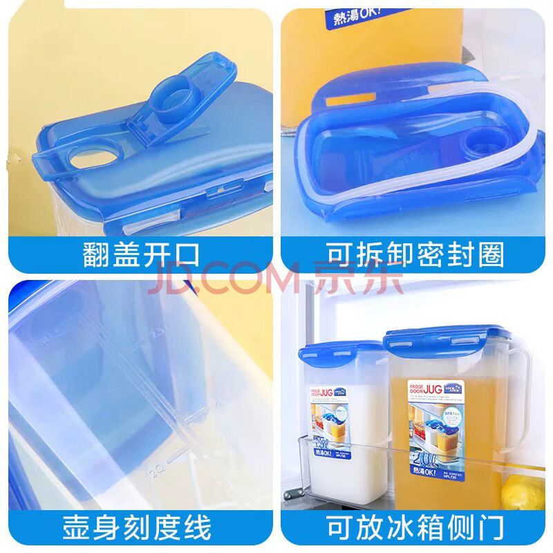 商品相册:乐扣乐扣 大容量塑料凉水壶夏季果汁杯家用冷水壶 冰箱冷藏水瓶水杯 3L 第