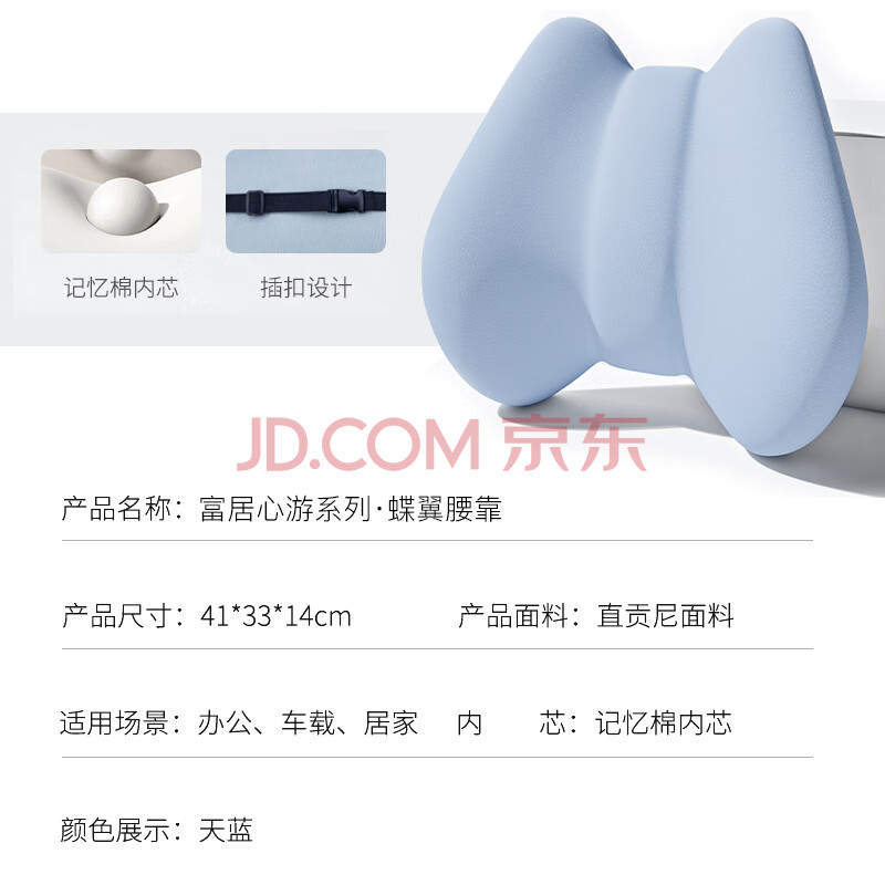 商品相册:富居腰靠 护腰靠垫腰托办公室汽车用久坐神器腰部支撑腰枕 天空蓝第1张/共6