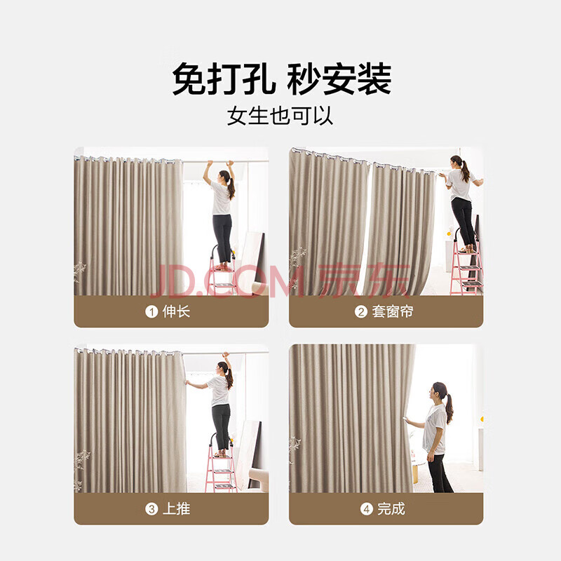 商品相册:水星家纺窗帘免打孔安装卧室遮光隔音窗帘杆整套遮阳帘280宽×180高cm米色第