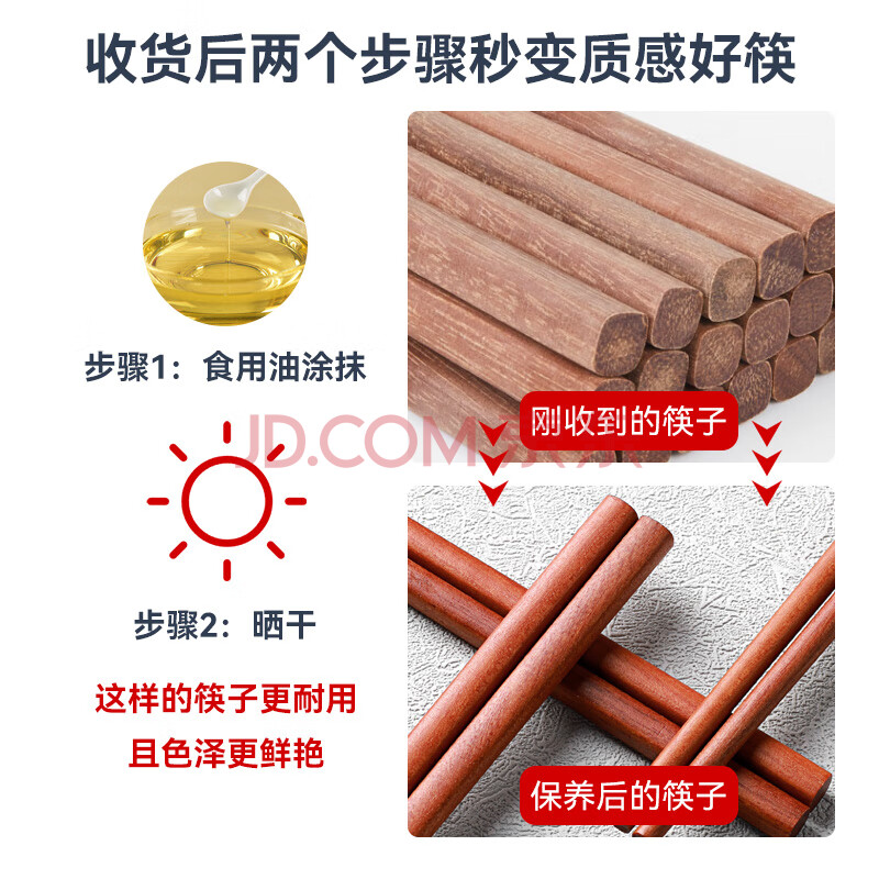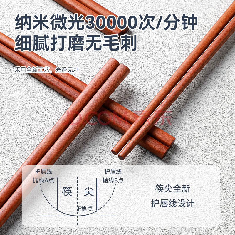 商品相册:唐宗筷 红檀木筷子10双装 无漆无蜡 家用酒店用商用餐具套装C6253第