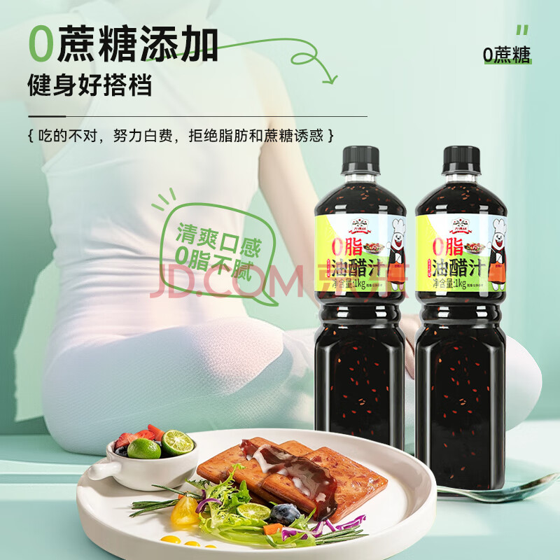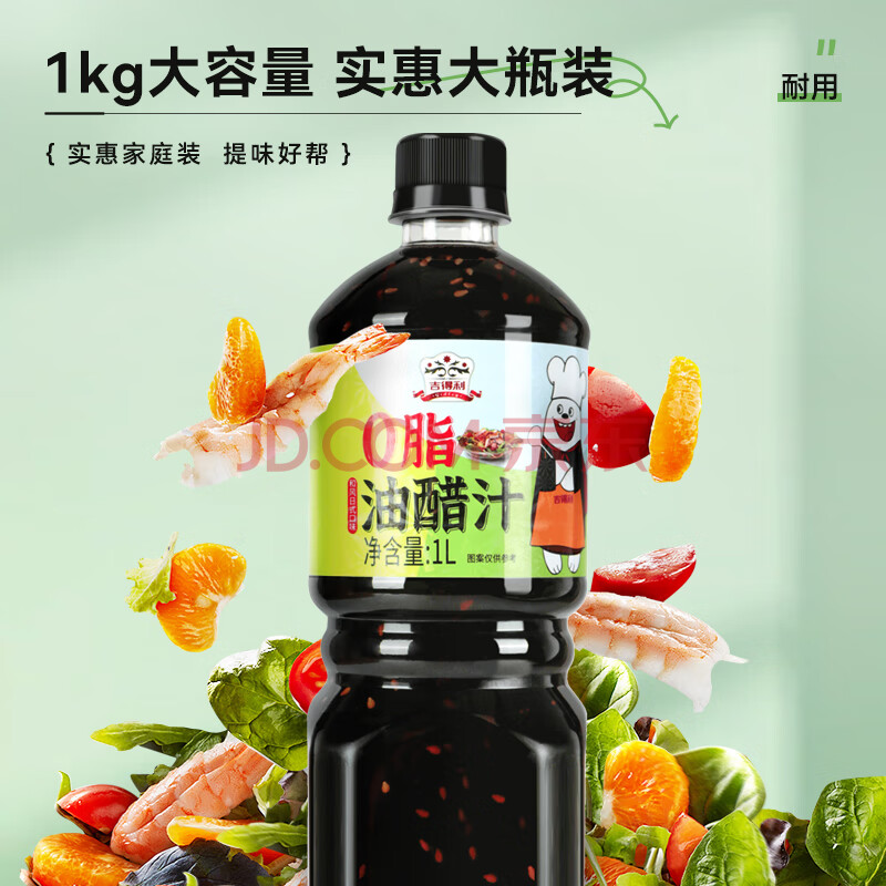 商品相册:吉得利0脂肪油醋汁1L 轻食健身餐鸡胸肉蔬菜水果沙拉凉拌汁第