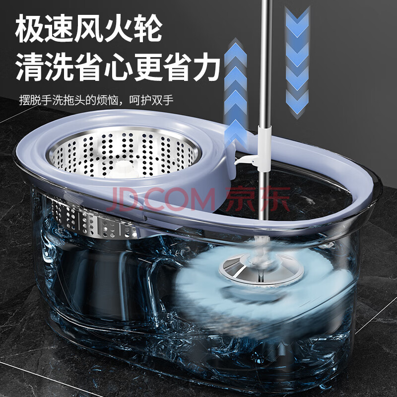 商品相册:百世优品旋转拖把4头不锈钢盘家用一拖净免手洗2025家用吸水懒人墩布桶第