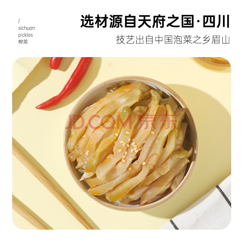 商品相册:味聚特 榨菜丝咸菜下饭菜 佐餐拌面即食酱菜腌菜 学生榨菜五连包53g*5第