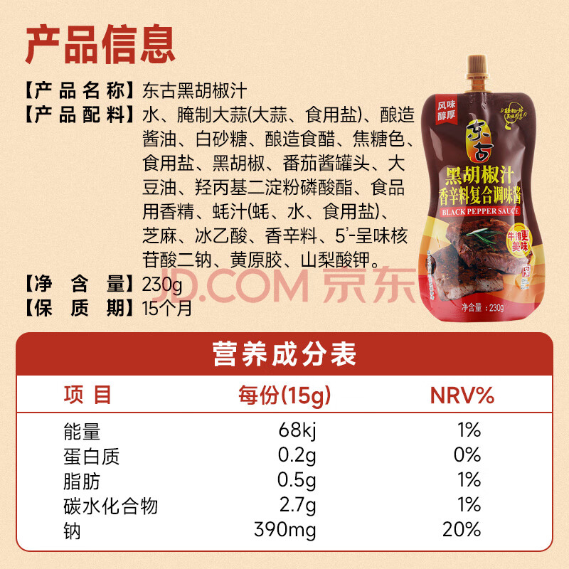 商品相册:东古 黑胡椒汁230g挤挤装 黑椒酱黑椒汁意面酱牛排酱调味酱第