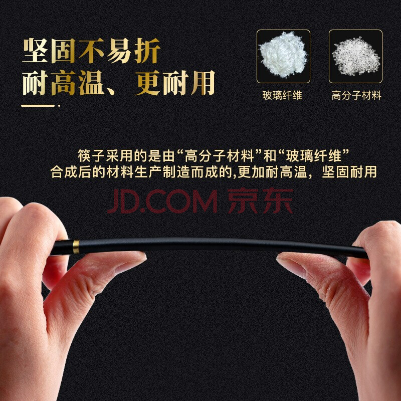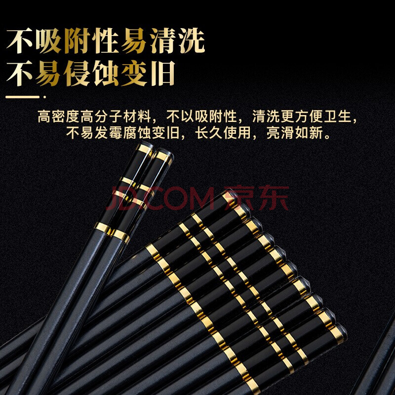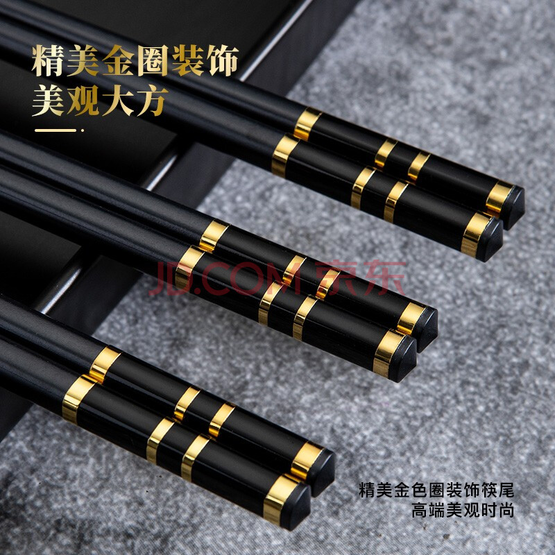 商品相册:拾画 合金筷子 不锈不发霉10双装 家用酒店日式筷子 黑底金圈款27cm第