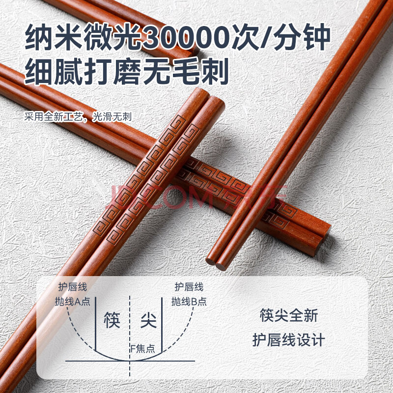 商品相册:唐宗筷 红檀木筷子10双装-刻花 家用实木 木质 防滑 耐高温C6255第