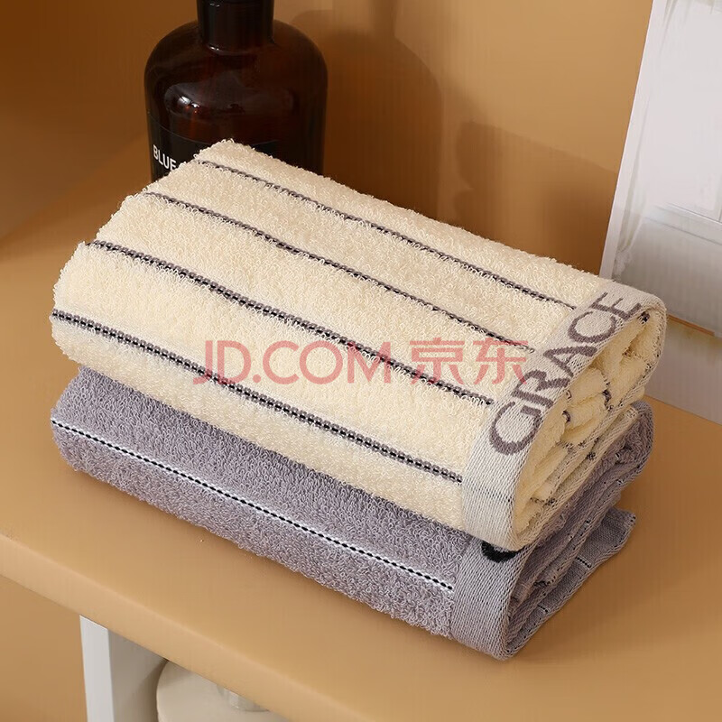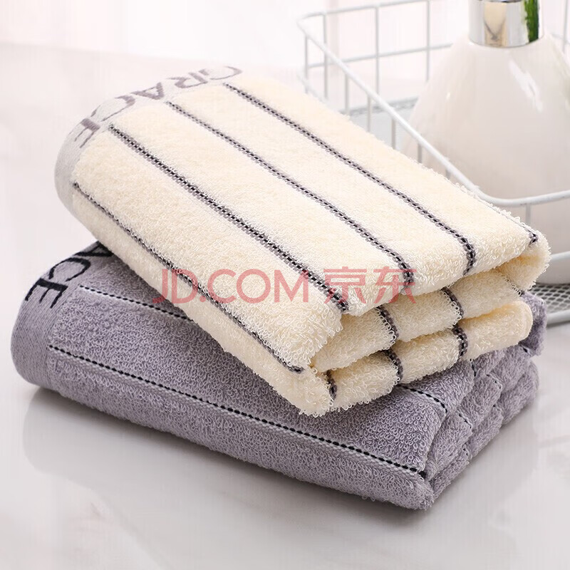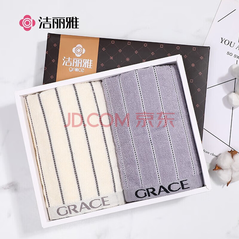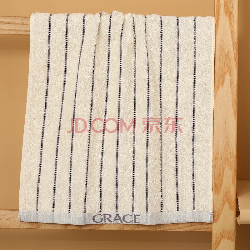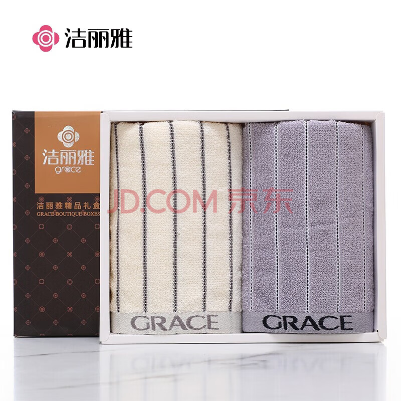 商品相册:洁丽雅(Grace)毛巾礼盒A类抗菌纯棉套装商务送礼年会可绣字灰/白条纹 72*34第