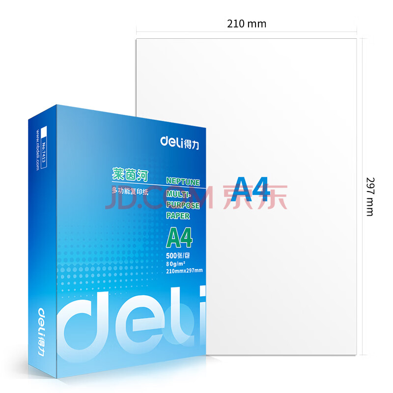 商品相册:得力(deli)莱茵河A4纸打印纸A4/80g复印纸 2500张 5包/箱 A4/80g第