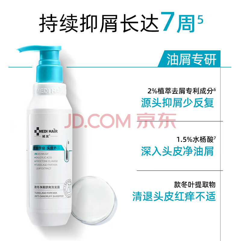 商品相册:域发 款冬去屑洗发水净屑舒爽洗发露持久净屑清洁弱酸性洗头膏300ml第