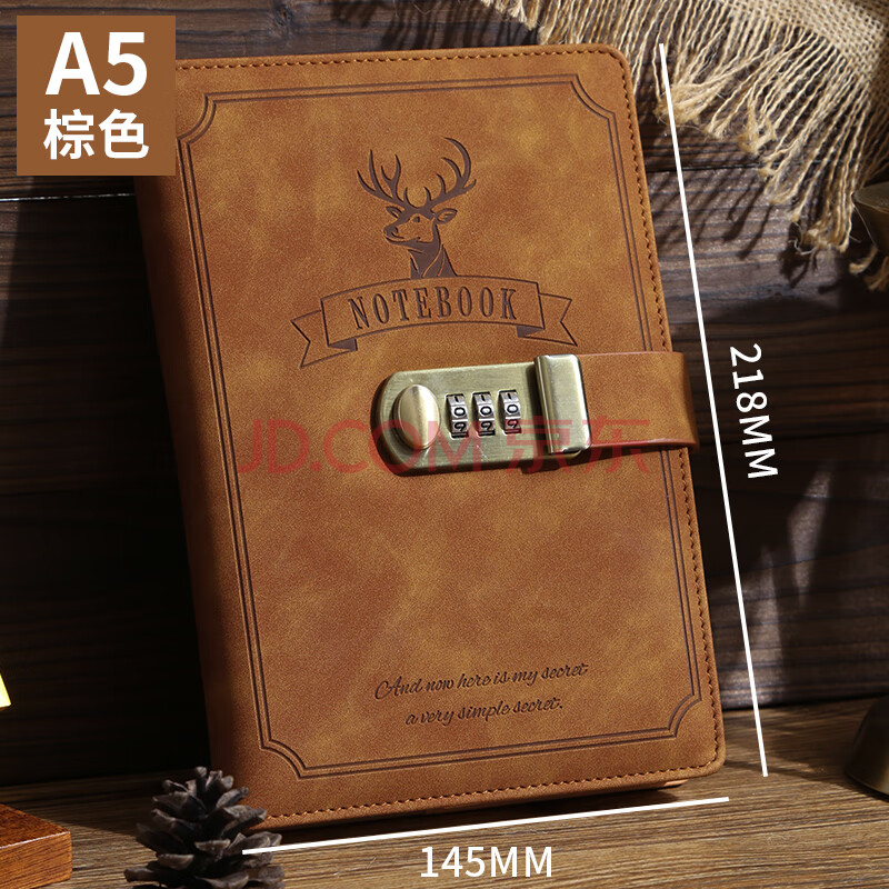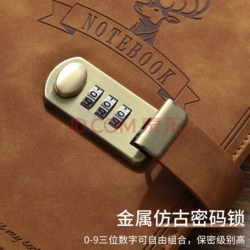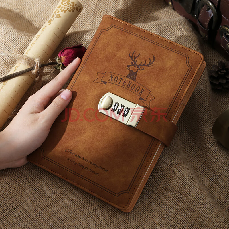 商品相册:【全网低价】法拉蒙(faramon)复古密码本带锁创意日记本简约笔记本A5加厚手账本笔记本子学生文具记事本 棕色第