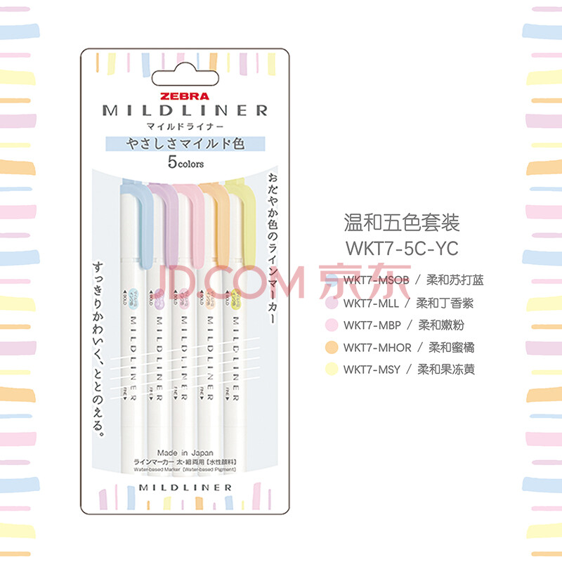 商品相册:斑马牌 (ZEBRA)【热门商品】荧光笔 WKT7 5色套装 温和系列 双头荧光笔 学生标记笔记号笔 WKT7-5C-YC第