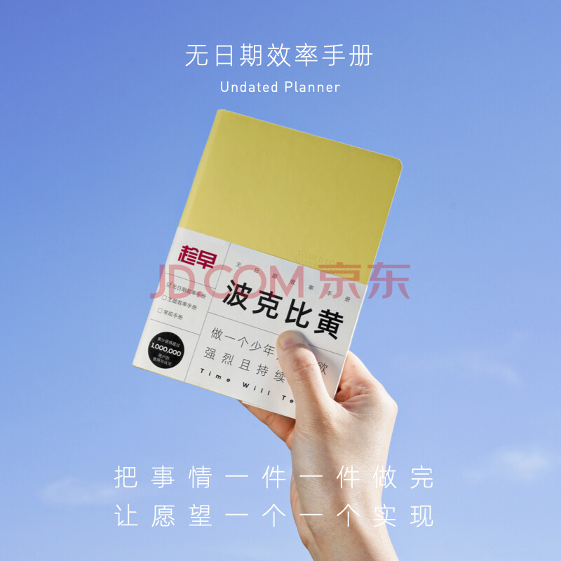 商品相册:趁早A5无日期效率手册薄本手账学生笔记本日程本每日自律打卡计划本时间管理办公笔记本子-波克比黄第