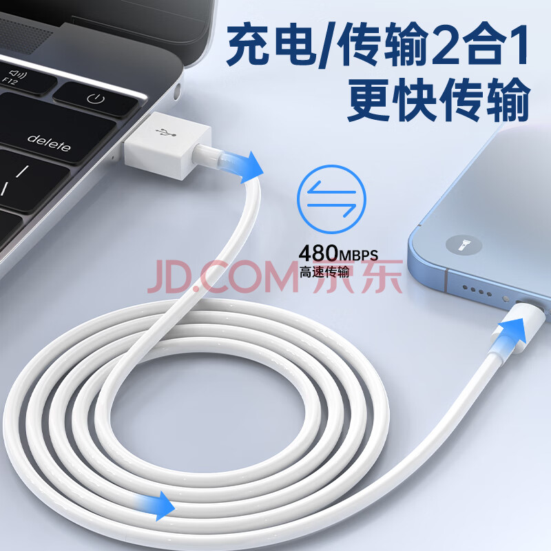 商品相册:朗客【2条装】苹果数据线1米快充充电线适用iPhone14/13/12/11Pro Max/手机充电器线平板iPad Air白色第
