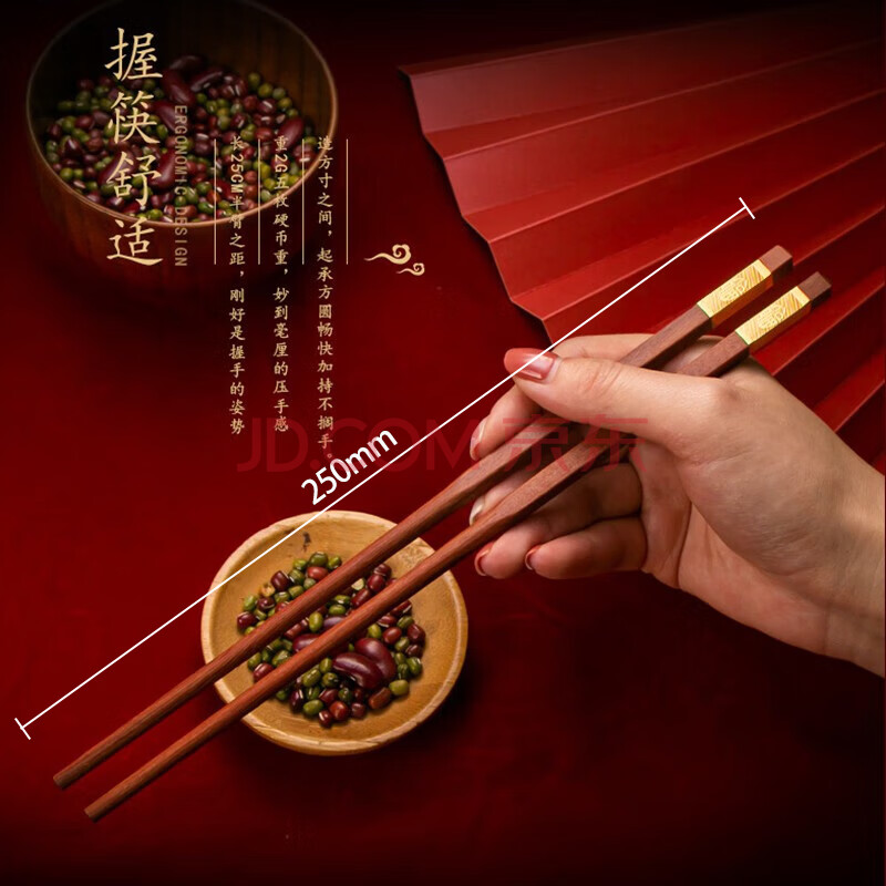 商品相册:拾画高档红檀木筷 家用防滑无漆无蜡筷子 精品餐具中华筷金福款10双装第