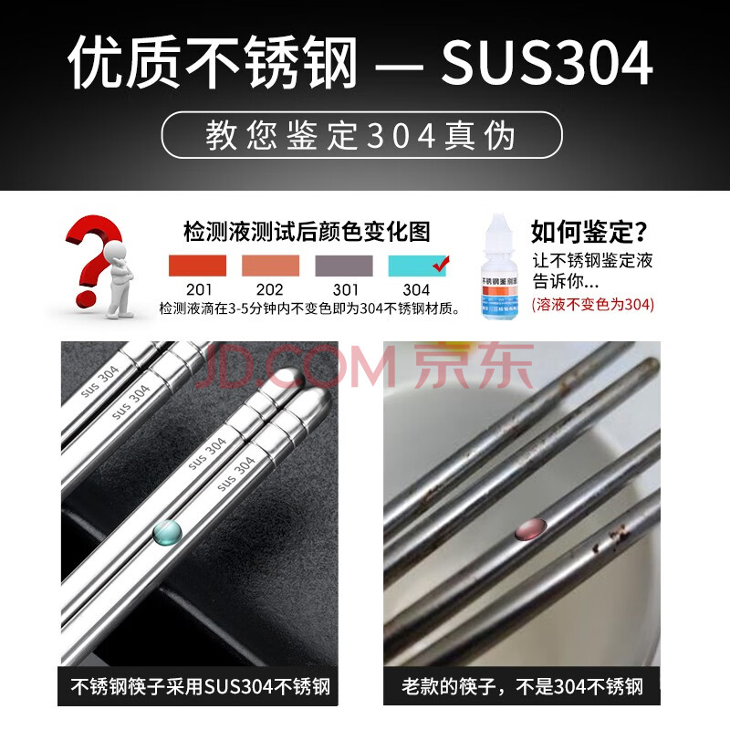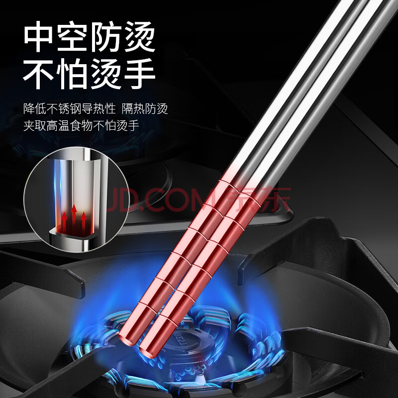 商品相册:广意304不锈钢筷子防滑防烫耐摔家用家庭装金属筷 六环筷10双装GY7512第