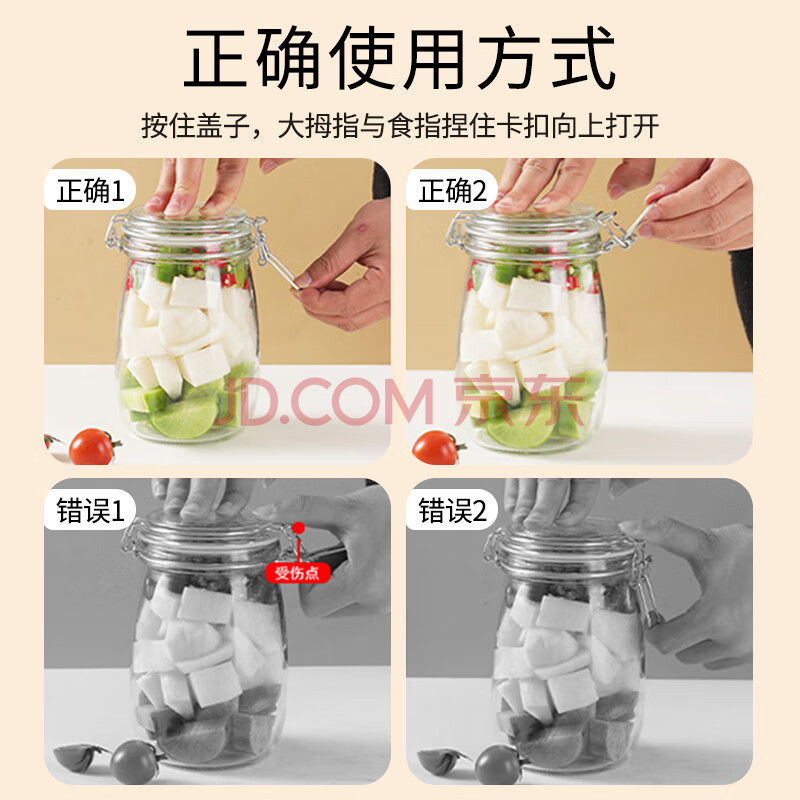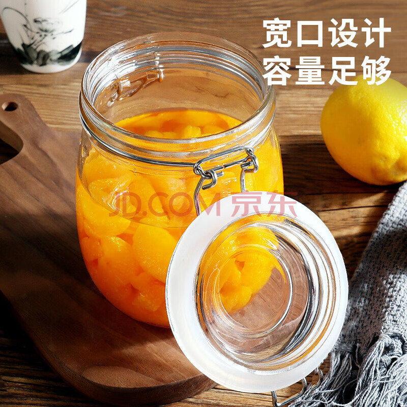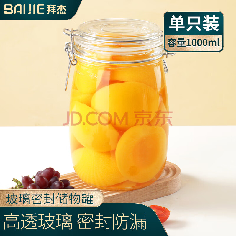 商品相册:拜杰玻璃密封罐储物瓶泡酒瓶玻璃瓶子蜂蜜罐果酱罐泡菜坛1000ml罐头瓶第