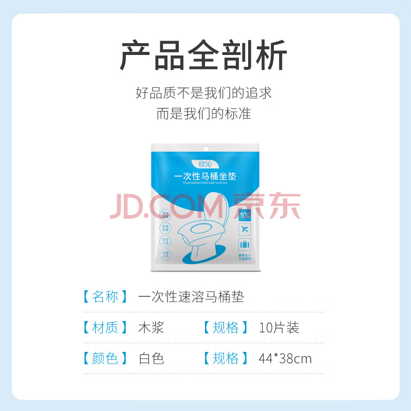商品相册:欣沁一次性马桶垫50片木浆加厚速溶差旅马桶坐垫纸50片(10片*5包)第