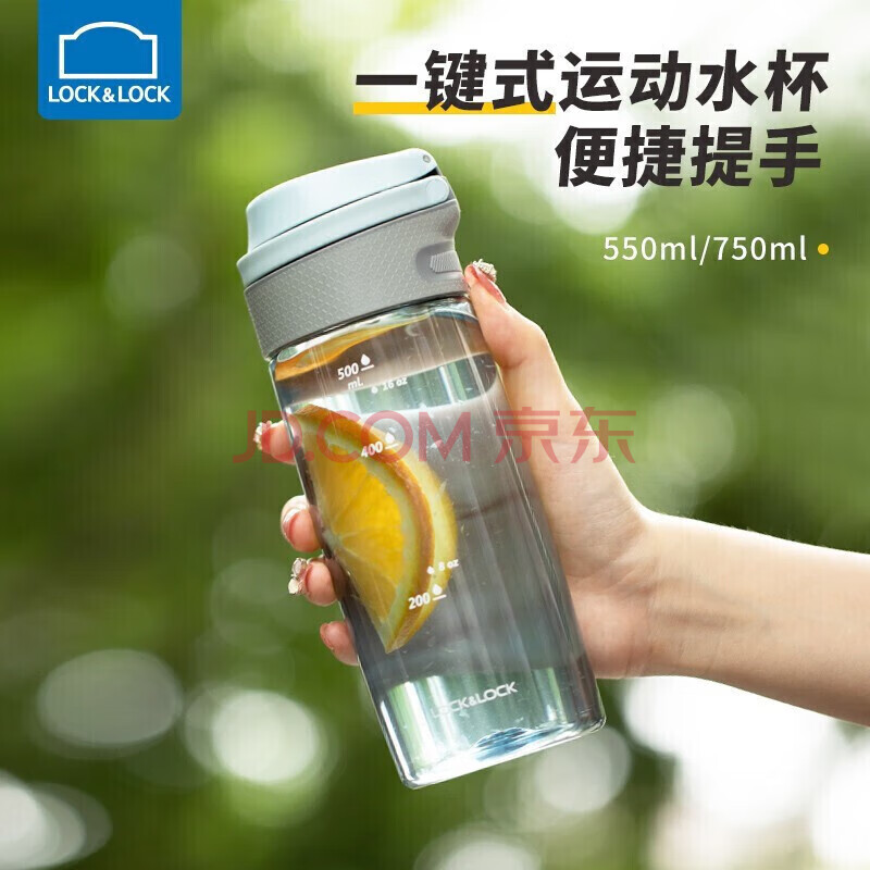 商品相册:乐扣乐扣(LOCK&LOCK)一键式运动水杯塑料杯户外便携水壶带把手刻度男女杯子蓝色550ml第
