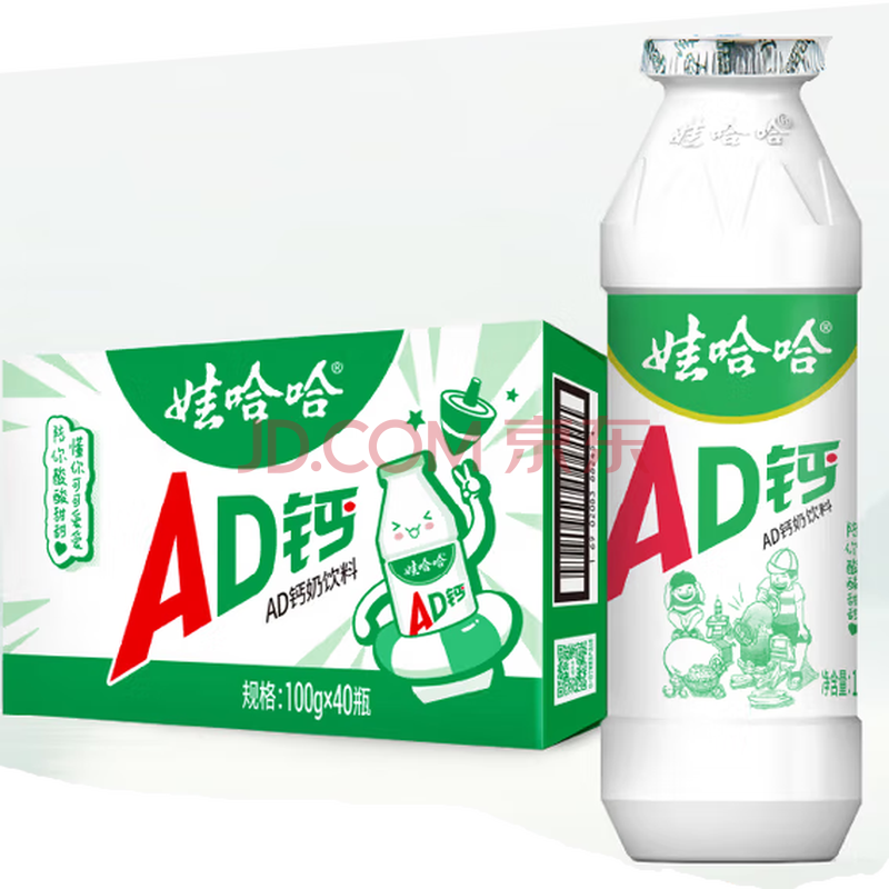 商品相册:娃哈哈 AD钙奶 含乳饮料 100g*40 整箱 口袋装(新老包装随机发货)第