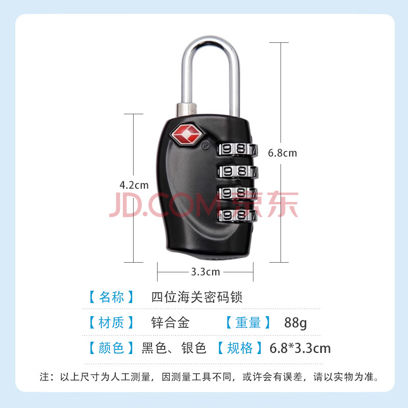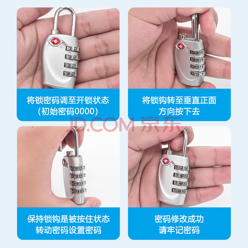 商品相册:欣沁 出国四键密码锁 防盗旅行拉杆箱挂锁TSA背包锁 银色第