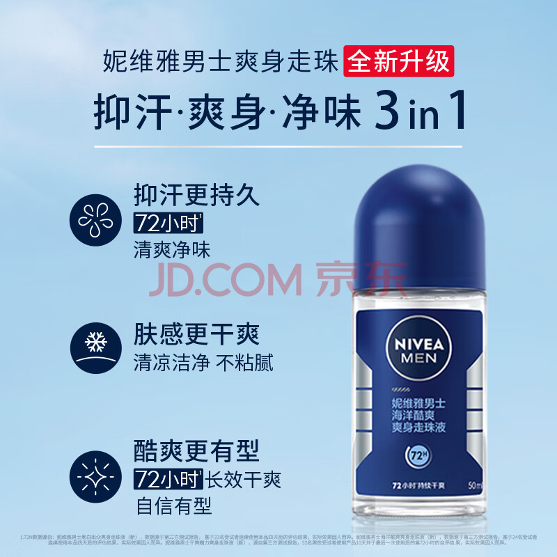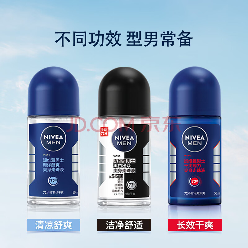 商品相册:妮维雅(NIVEA)抑汗除臭净味香体腋下止汗露干爽滚珠男士黑白出众爽身走珠液50ml第