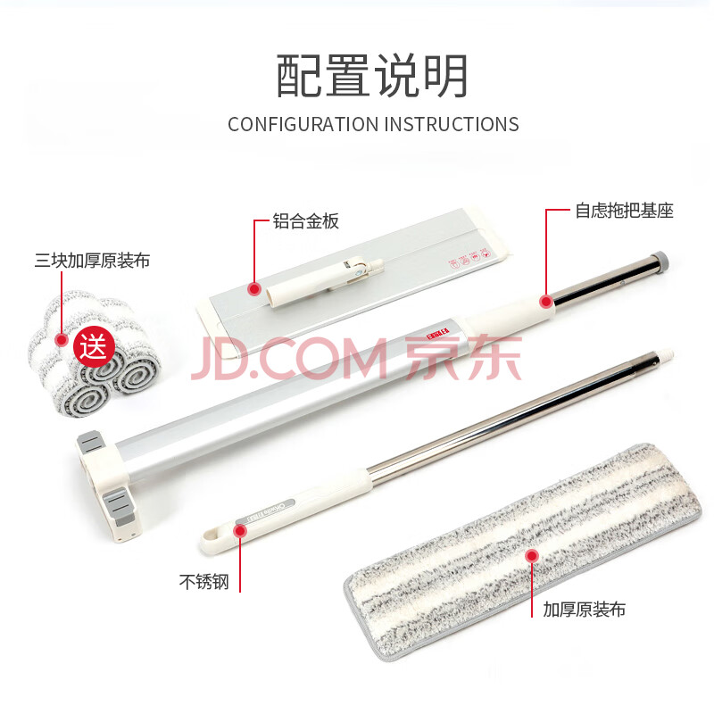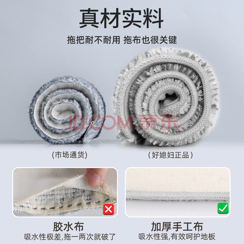 商品相册:好媳妇 平板拖把40cm4块布铝合金免手洗大号家用一拖净吸水懒人地拖第