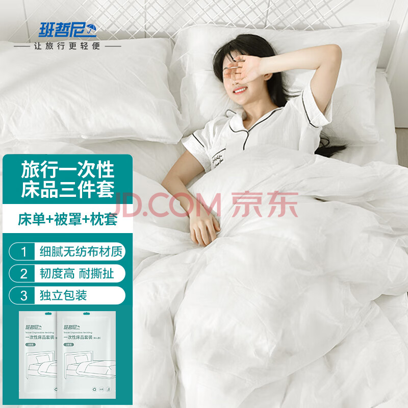 商品相册:班哲尼一次性三件套床单旅行酒店隔脏被罩枕套睡袋火车单双人大床用品第1张/共9