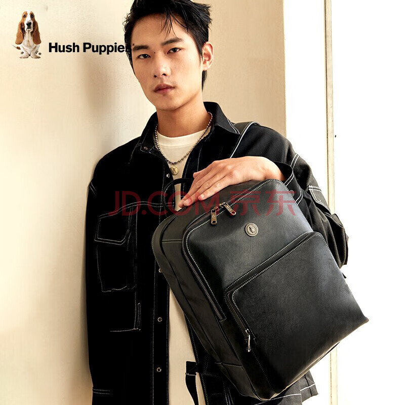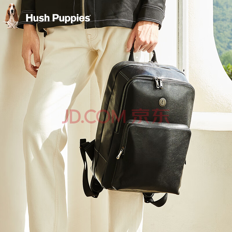 商品相册:暇步士(Hush Puppies)商务双肩包男大容量真皮背包14英寸电脑包牛皮旅行生日礼物第