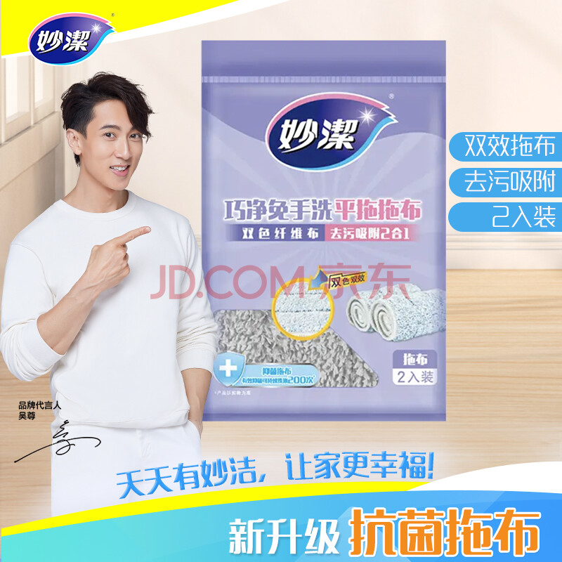商品相册:妙洁平板拖把布33.5cm共2布巧净免手洗平拖拖布替换装第