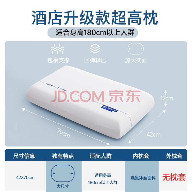 商品相册:诺伊曼 NOYOKE酒店同款零压力慢回弹记忆棉颈椎枕头成人加长【无外套超高枕】第