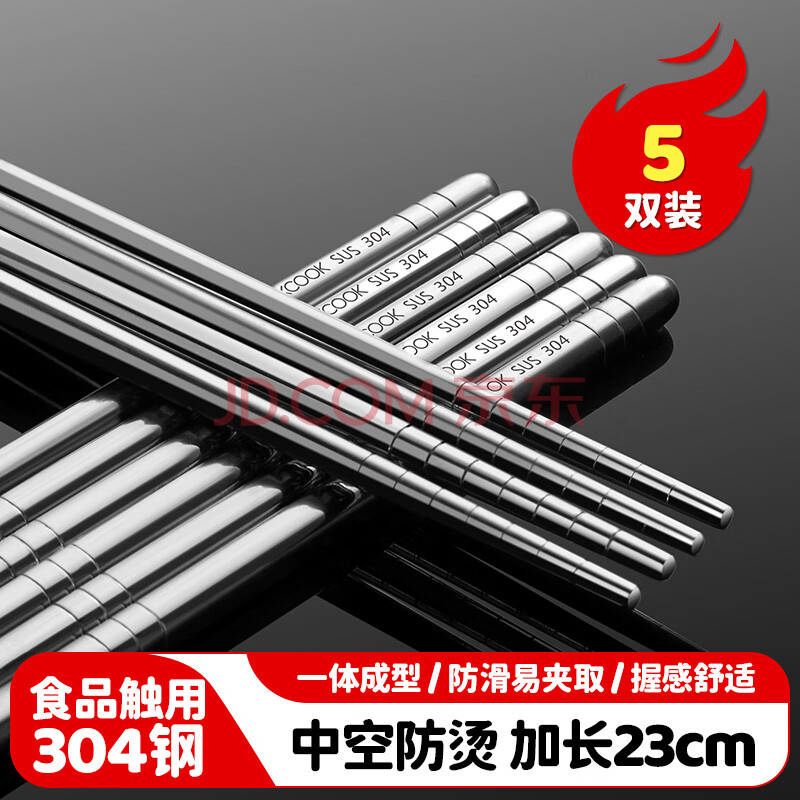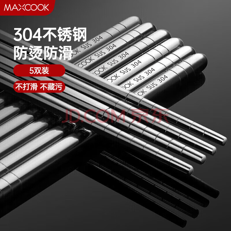 商品相册:美厨(MAXCOOK)304不锈钢筷子 5双装不锈不易发霉耐高温易清洗 家用筷子MCPJ6594第