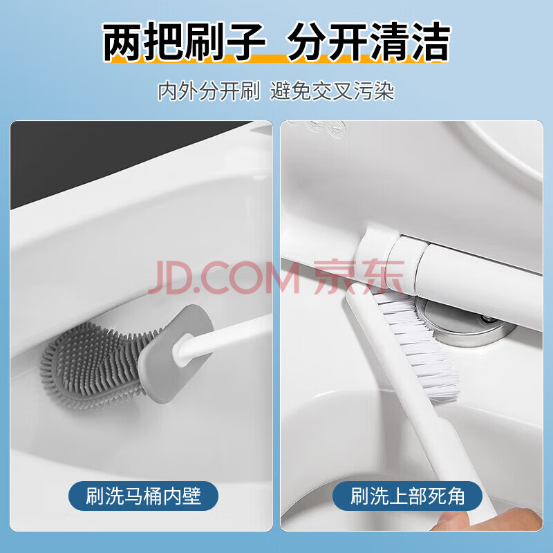 商品相册:欧蓝月 硅胶马桶刷套装清洁工具无死角挂墙式卫生间壁挂式两把刷子第