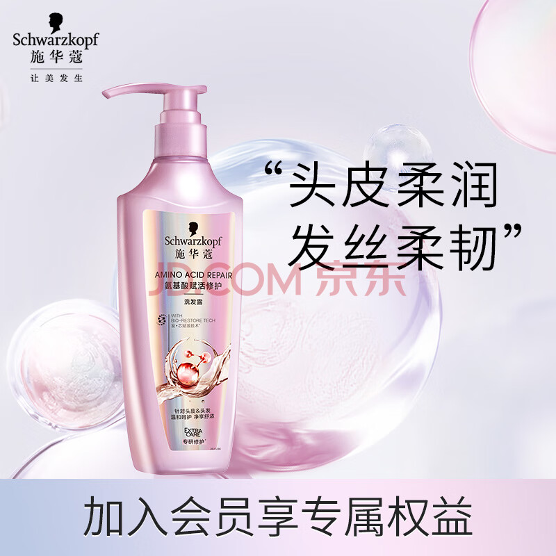 商品相册:施华蔻(Schwarzkopf)氨基酸赋活修护洗发露600ml 无硅油洗发水 改善毛躁柔顺温和第