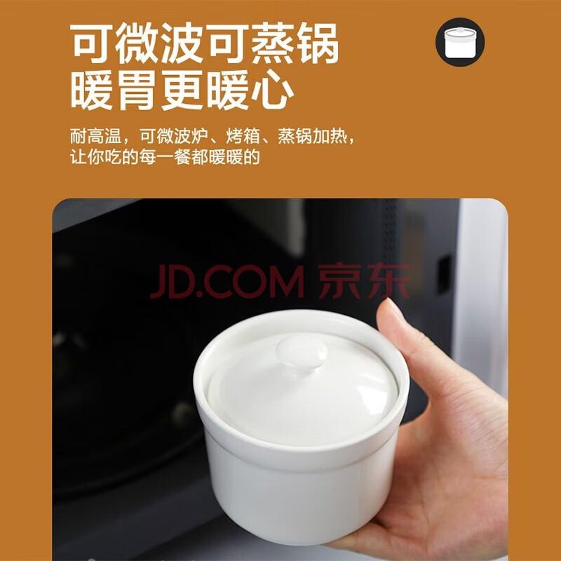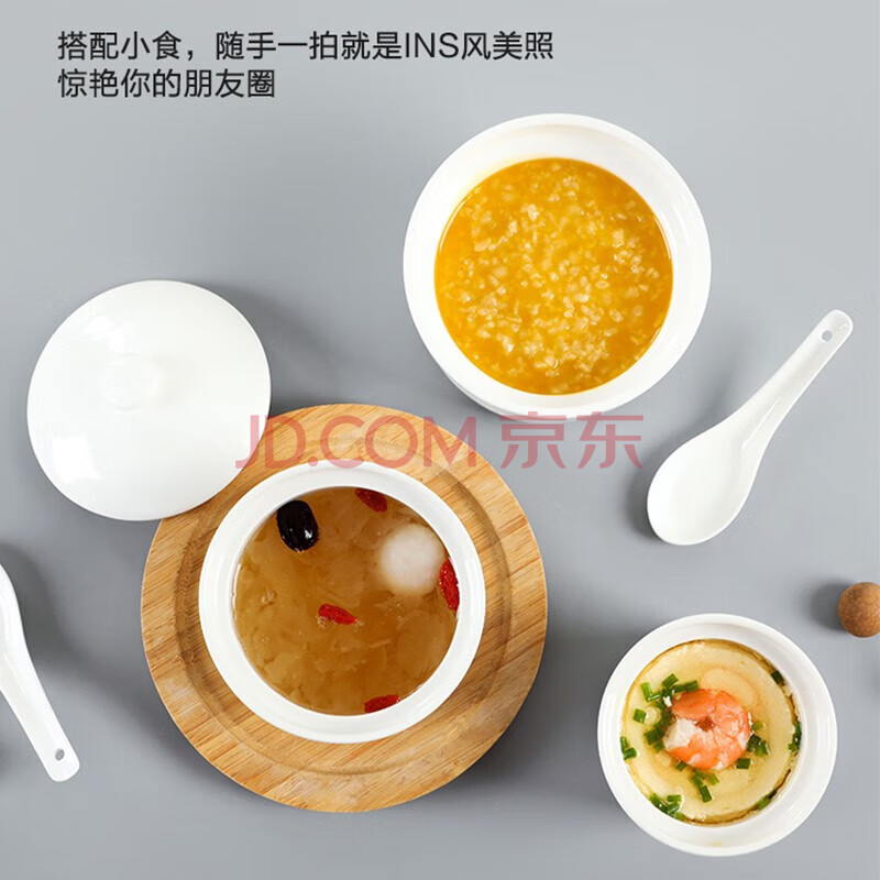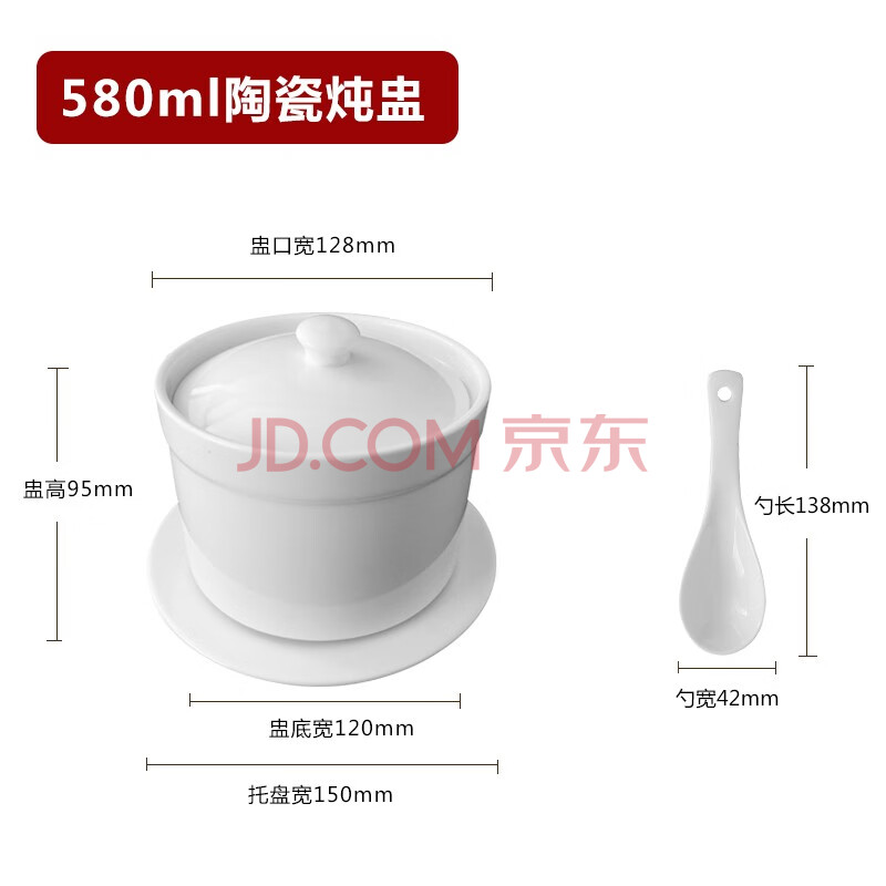 商品相册:贝瑟斯 陶瓷碗炖盅隔水炖盅蒸蛋羹碗盅瓦罐炖盅炖汤盅蒸盅带盖勺碟580ml第