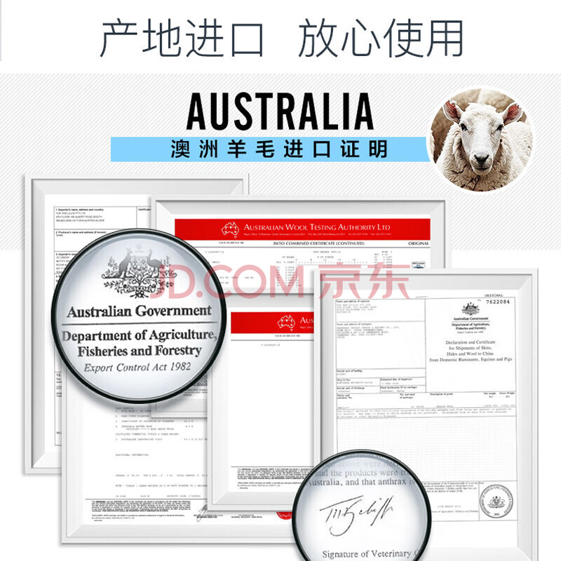 商品相册:富安娜澳洲进口羊毛被100%纯羊毛被子纯棉冬季被芯双人约6.6斤203*229cm第