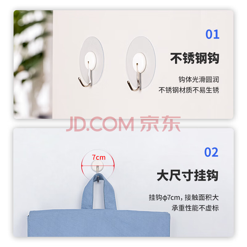 商品相册:得力(deli)居家挂钩 3Kg强力承载 圆形带无痕背胶4只/卡 白色19374第