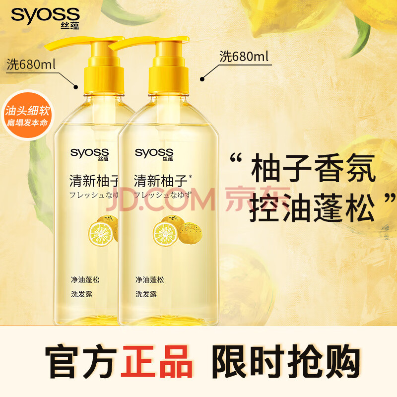 商品相册:丝蕴(syoss)洗发水清新柚子控油蓬松持久清爽洗头膏洗发露680ml*2第
