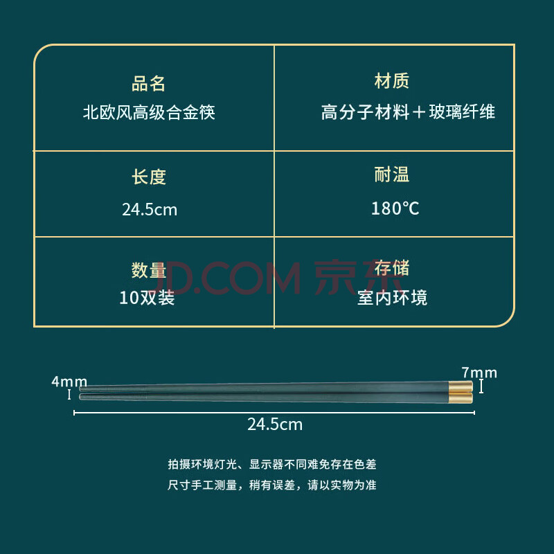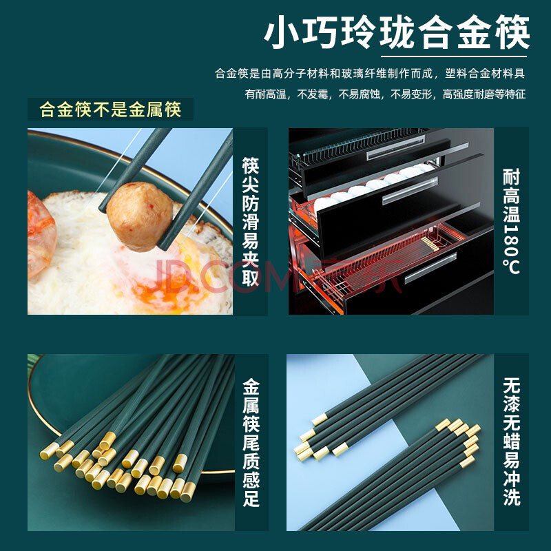 商品相册:拾画抗菌合金筷子 家用不锈不发霉防滑筷 莫兰迪云杉绿款24.5cm10双装第