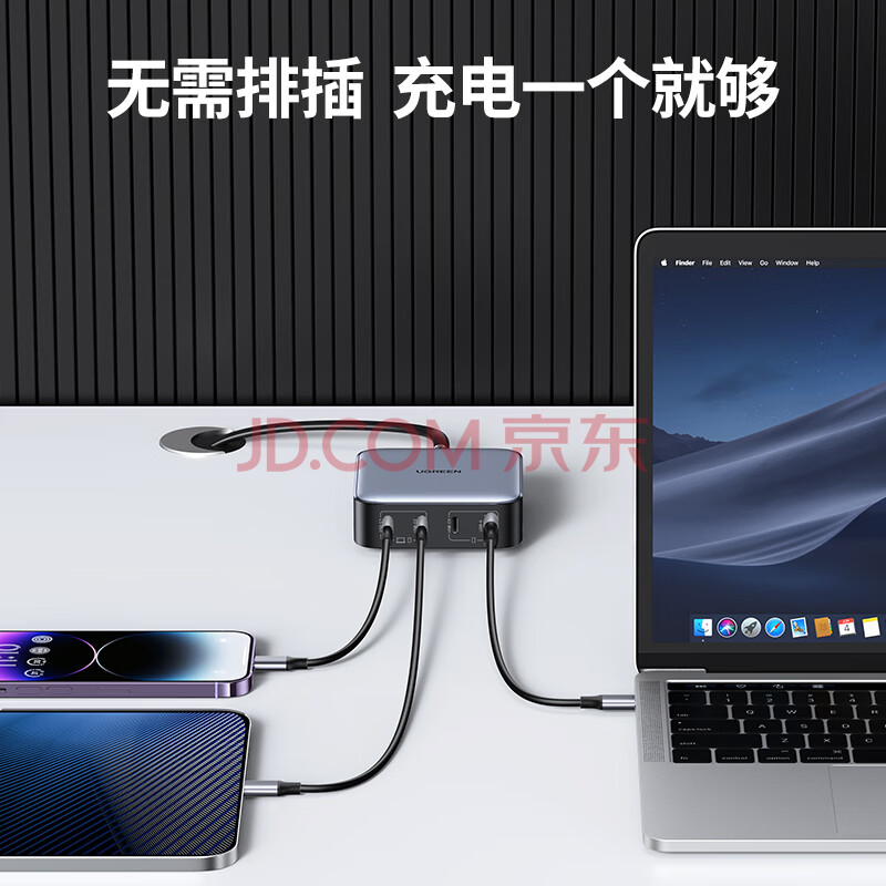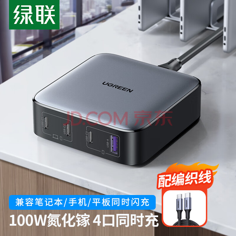商品相册:绿联100W氮化镓充电器套装多口pd/PPS快充头Type-C桌面插线板适用小米苹果16华为手机笔记本电脑数据线第