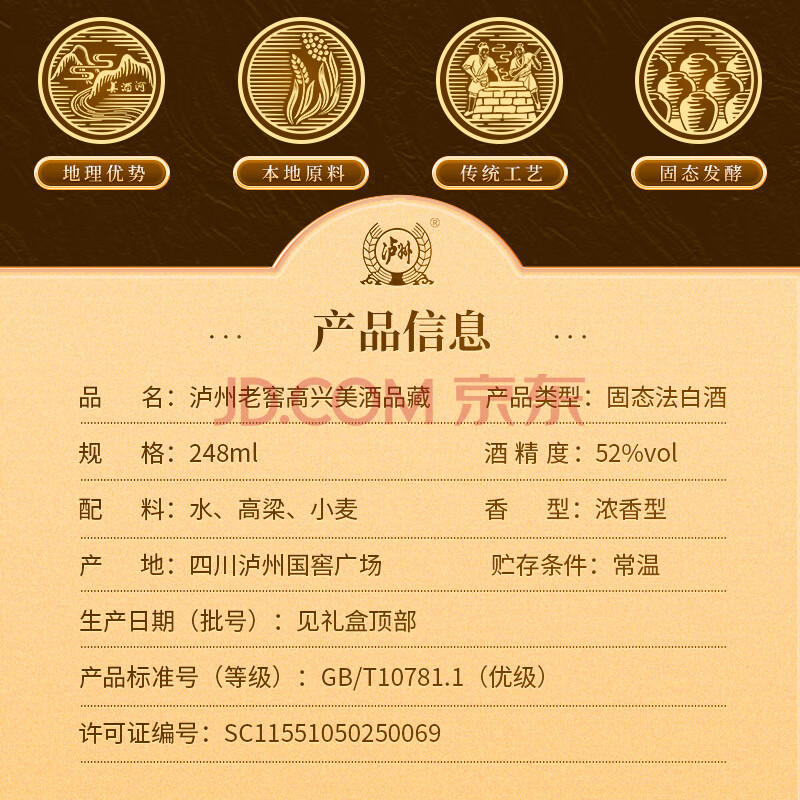 商品相册:泸州老窖高兴美酒 品藏 52度 浓香型白酒248ml*6瓶整箱送礼口粮自饮酒第
