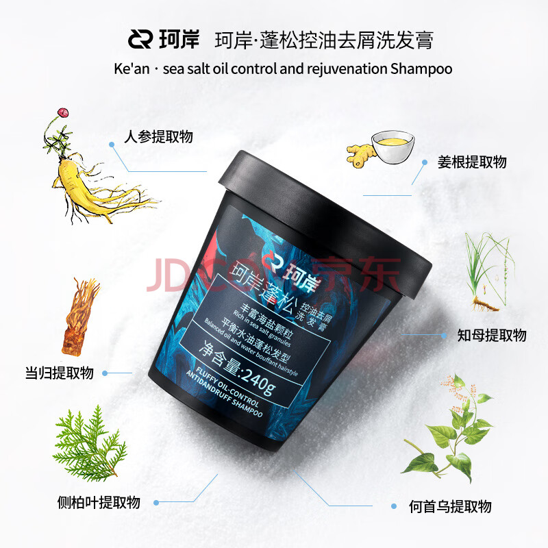 商品相册:珂岸海盐洗发膏240g控油去屑洗发水蓬松发根洗发露磨砂洗头膏男士专用第