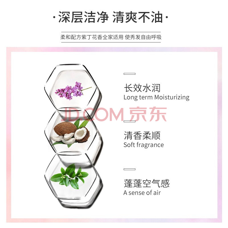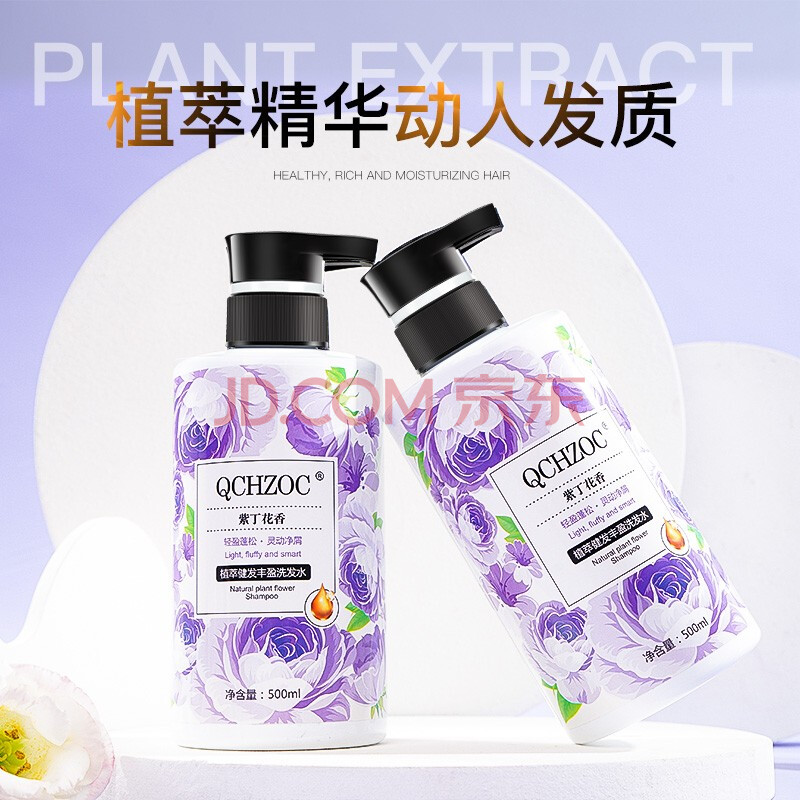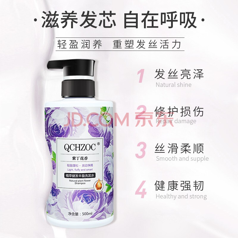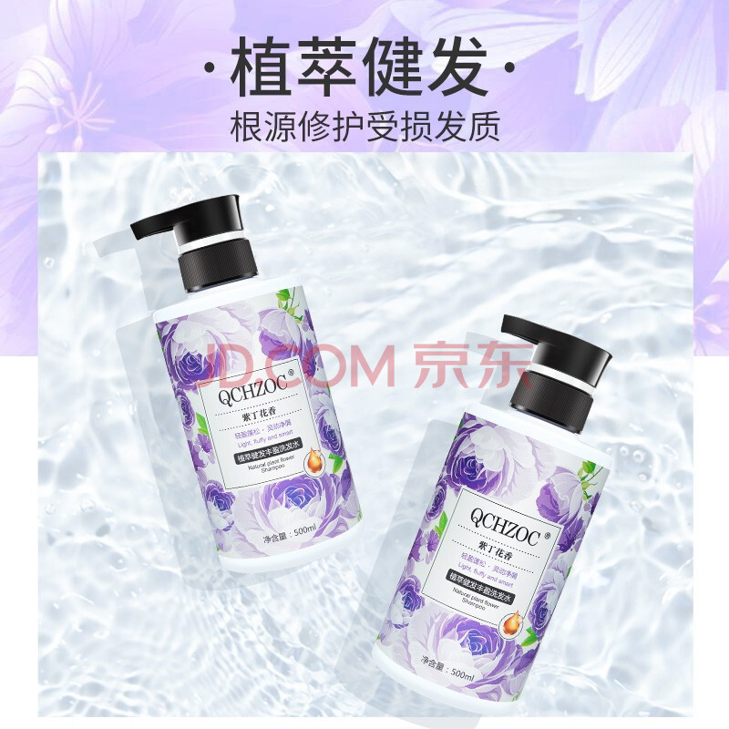 商品相册:QCHZOC紫丁花花香植萃健发丰盈柔顺持久留香滋养洗发水强韧发根保湿洗发露第